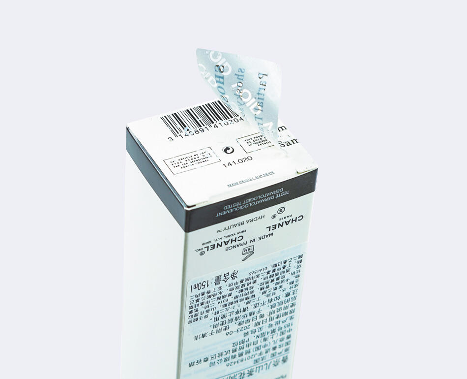 This is 50 microns Glossy White Partial Transfer low residue VOID Tamper-Proof Label, which is our popular security material label. These void seals and labels act as a deterrent, helping to identify and prove product tampering If an attempt is made to remove the object by leaving behind a layer of printed adhesive and it is not possible to reconstruct it to its original condition, the tamper proof sticker or mark exposes the words “VOID” on the surface and on the film itself.