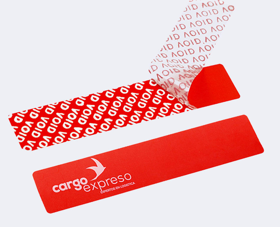 This is our standard 25 microns matt red partial transfer high residue void label, after peeling off the sticker, the adhesive layer with security message would be partially transferred to the applied surface. It’s made of our high-quality matt “VOID” polyester, which is designed as a security label that displays a “VOID” message when removed. It is suitable for package warranty seals on assets because if the sticker is removed, there is ample proof that the item has been tampered with.