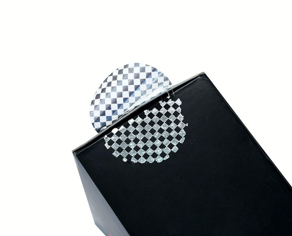This sticker can be applied to almost any surface, and if tampering occurs, it will appear hidden messages that will alert you to attempted theft. This unique security label is ideal for a wide variety of applications. The total transfer design ensures that the message cannot be replaced once it has been revealed, making it impossible to conceal. The silver color Looks very advanced and will add a touch of class to your products.