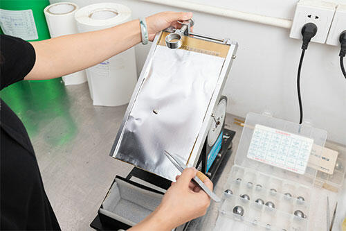 The security labels are routinely tested by our competent QA team in our specialized laboratory during the entire production process for adhesive peel strength, destructibility, adhesion testing, and others. Results are recorded and marked to remind the production team while completing the manufacturing process.